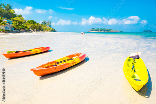 Kayak at the white sand beach and blue sea in the summer on Koh Chang., THAILAND