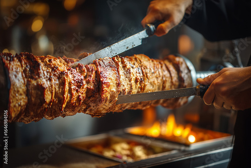 Kebab z rusztu krojony w detalu – aromatyczne mięso gotowe do podania