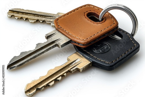 Keys and keychain with space for logo isolated on white background. Minimalist design for branding and identity.