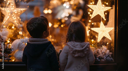 christmas, children, children, window, display, decoration, light, ornament, star, festive, celebration, holiday, season, winter, december, joy, happiness, wonder, magic, sparkle, glistering, night, dark, silhouette, family, love, cute, adorable, children, youth, childhood, memory, tradition, gift, present, shopping, retail, store, shop, holiday spirit, christmas tree, christmas lights