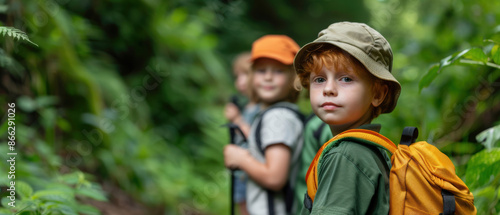 children, hike, lush, green, forest, backpack, hat, explore, nature, enjoy, science, subject, children, terrain, children, trip, mountain, tree, teacher, wood, trek, day, cognition, trail, journey, study, walk, reserve