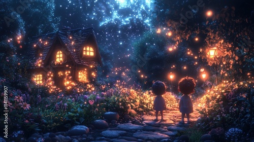 Kids Gardening Together in a Community Garden Planting Flowers and Plants with Joy and Enthusiasm Outdoors