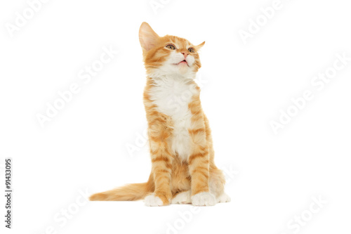ginger, striped, pet, animal, cat, kitten, isolated, cat, felino, cute, young, looking, domestic, animal, fur, 1, whisker, staring, paw, sitting, red, posture, yellow, orange, female, fluffy, curiosity, positive, small, front, emotion, examining, watching, eye