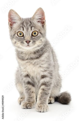 kitten, cat, isolated, animal, pet, grey, felino, cute, domestic, mammal, studio, 1, small, sitting, striped, beautiful