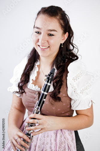 clarinet, woman, dress, bavarian, bavaria, pretty, attractive, young, music, wind instrument, oktoberfest, musical instrument