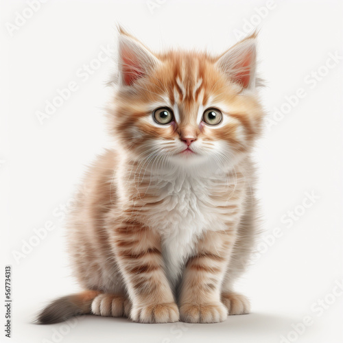 Kleine sitzende Katze auf weißem Hintergrund isoliert (erstellt durch KI-Tool)