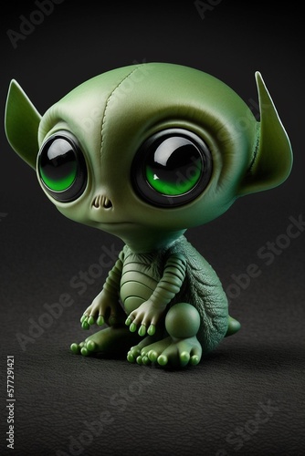 Kleine süße Alien Figur aus Plastik in Grün, ai generativ