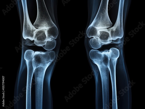 Knee joint x-ray (AP and lateral view) showing early signs of degenerative osteoarthritis. Professional photo taken with a professional DSLR camera.