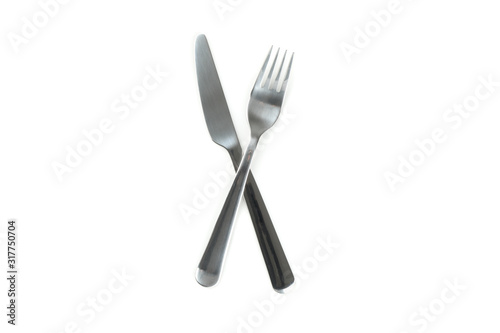 Knife and fork, cutlery isolated on white background. Kitchen, serving
