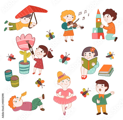 Коллекция изображений детей разных профессий, творческих занятий. Детство, развитие, образование.