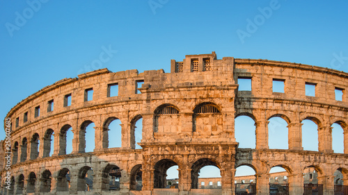 coliseum, amphitheatre, panorama, memorial, ruin, antique, architecture, evening, adria, aged, archaeology, arena, outside, famous, blue, europa, window, building, curved, history, gladiator, heaven, istria, croatia, culture, wall, historical building, nobody, landmark, pula, travel, travel, destination, roma, roman, summer, sunlight, sunset, city, stone, theatre, tour tourism, touristy, traditional, ancient, vacation, wall, arch, exterior