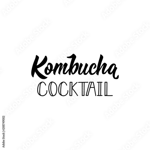 Kombucha cocktail. Vector illustration. Lettering. Ink illustration. Kombucha healthy fermented probiotic tea.