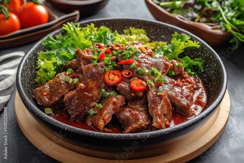 Korean hot pot featuring pork backbone braised pollack chili paste bulgogi vegetables and sides for a healthy meal