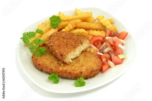 chop, fish, fish, fried, french fries, fries, isolated, fast food, tomatoes, tomatoes, crispy, food, meat, dinner, meal, salad, potato, parsley