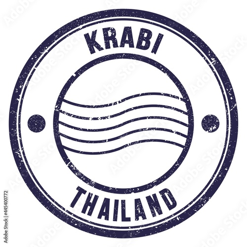 KRABI - THAILAND, words written on blue postal stamp