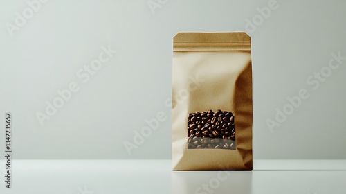 hot drink, bean, bag, paper, roasted, cardboard box, food, drink, container, product, fresh, aroma, cafes, shop, retail, store, window, clear, display, presentation, texture, surface, table, white, neutral, background, simple, minimal, still life, copy, space, isolated, studio, shot, single, object, brown, dark, grain, closeup, front, view, design, template, blank, modern, empty
