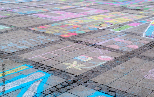 square, chalk, picture, colourful, colourful, colourful, children, baby, doodle, paint, outdoors, game, toy, street, sidewalk, art, artistic, closeup, childhood, concept, painting, ground, yellow, orange, red, blue, white, playful, artwork, creativity, creative, imagination, background, square, stone, texture, pattern, colorfulness