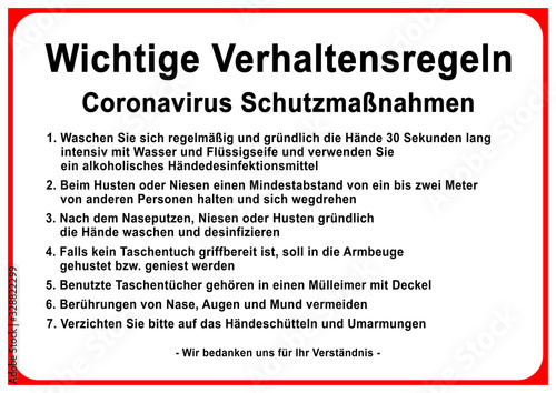 ks527 Kombi-Schild - deutsch: - Wichtige Verhaltensregeln: Coronavirus Schutzmaßnahmen - Hände waschen - washing hands. - 7 Punkte Plan / Poster - DIN A2 A3 A4 - xxl g9183