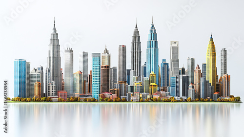 Kuala Lumpur skyscrapers Malaysia depicted against a white background