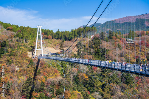Kuju, oita, Japan, November 11, 2018: Kokonoe Yume Suspension Bridge (otsurihashi), the most highest suspension bridge for walkway in Japan.
