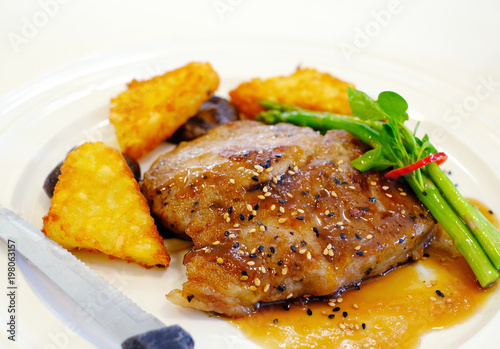 kurobuta pork steak with fried potato