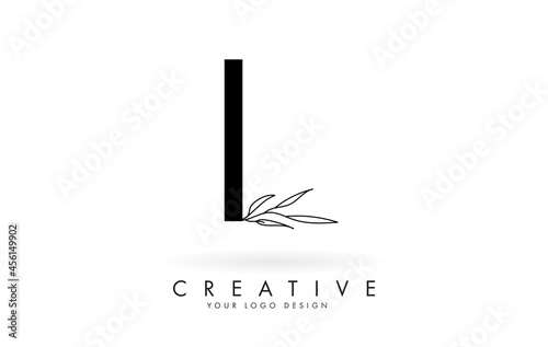 L letter logo design with elegant and slim leaves vector illustration.