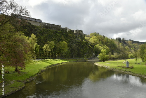 La Semois coulant paisiblement au pied du château-fort dans un cadre bucolique à Bouillon