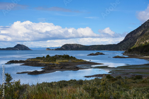 ushuaia, city, town, patagonia, view, argentine, sea, panorama, landscape, travel, coast, port, mountain, architecture, house, building, urban, water, blue, south america, andes, cordillera, snow, tour tourism, adventure, expedition, nature, wild, cold