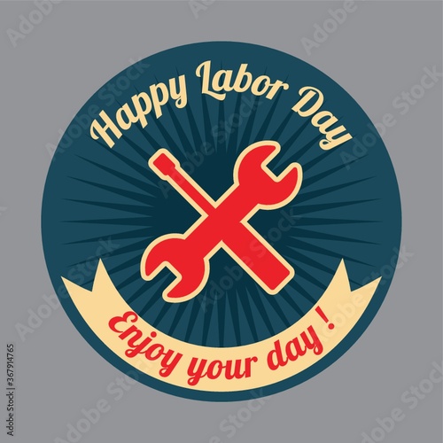 icon, icon, celebration, celebration, label, label, sticker, sticker, labor, working class, labor, day, day, ribbon, ribbon, happy, joyful, emotion, emotion, enjoy, screwdriver, spanner, spanner, wrench, wrench, stamp, stamp