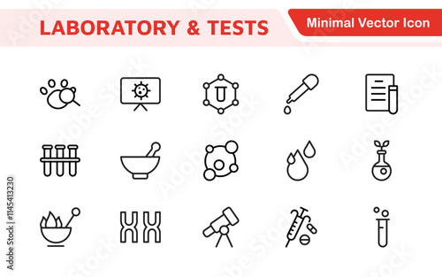 Laboratory and Tests Icon Set. A precise collection of icons for scientific testing and research, perfect for enhancing educational materials, lab websites, and health applications.