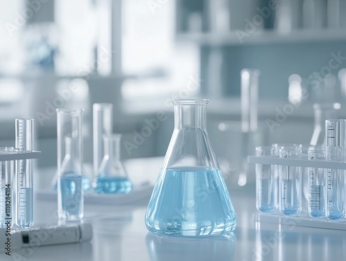 Laboratory Glassware with Blue Liquid