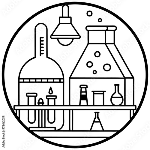 laboratory, outline, colouring, book, page, line, art, drawing, vector, science, research, experiment, equipment, test, chemistry, glassware, beaker, flask, microscope, simple, vignetting, black, white, minimal, illustration, doodle, hand-drawn, graphic, vintage, design, datum, analysis, study, clinical, scientific, reactor, tube, dispenser, researcher, measure, procedure, safety, setup, investigation