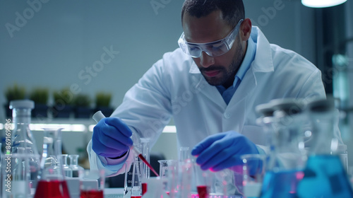 Laboratory technician analyzes a blood sample to detect doping substances in a modern medical laboratory.