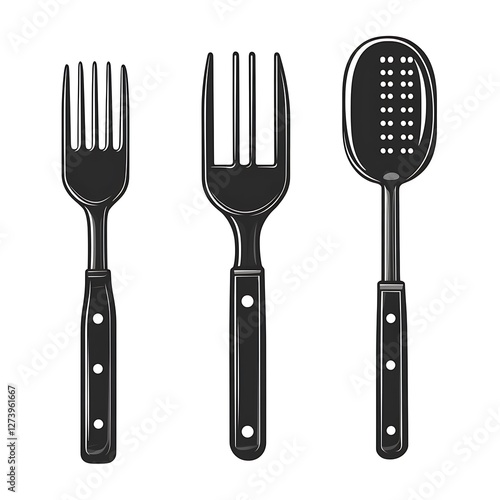 steel, ladle, kitchen, turner, background, design, food, isolated, vintage, illustration, home, wall, white, eatery, black, cooking, chef, metal, set, silver, tool, plastic, spoon, culinary, fork, kitchen utensile, utensil, chrome, stainless, equipment, spatula, whipped, traditional, collection, item