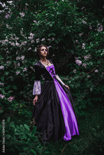 animal, baroque, beautiful, blooming, blossom, bouquet, cute, dog, doggy, dress, elegance, face, fairy tale, fantasy, fashion, fashionable, floral, flower, friends, garden, girl, girl, gorgeous, green, hair, historical, lady, lifestyle, lilac, love, nature, outdoors, park, people, pet, portrait, princess, puppy, purple, romantic, spitz, spring, stylish, tenderness, tree, victorian, woman, young