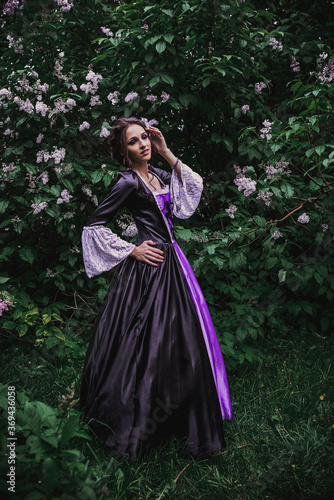 animal, baroque, beautiful, blooming, blossom, bouquet, cute, dog, doggy, dress, elegance, face, fairy tale, fantasy, fashion, fashionable, floral, flower, friends, garden, girl, girl, gorgeous, green, hair, historical, lady, lifestyle, lilac, love, nature, outdoors, park, people, pet, portrait, princess, puppy, purple, romantic, spitz, spring, stylish, tenderness, tree, victorian, woman, young