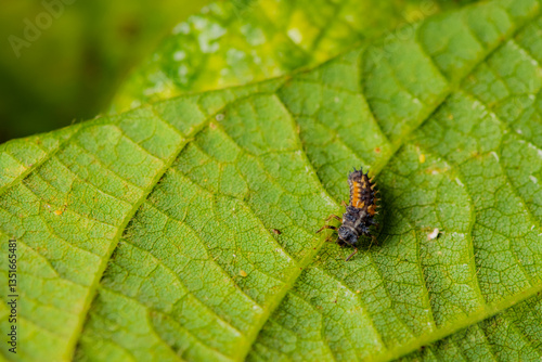 Ladybug larvae inhabit the leaves of wild plants. Overview of the natural environment in North China