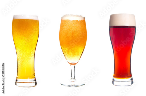 lager and dark draft beer in a glass isolated on white background