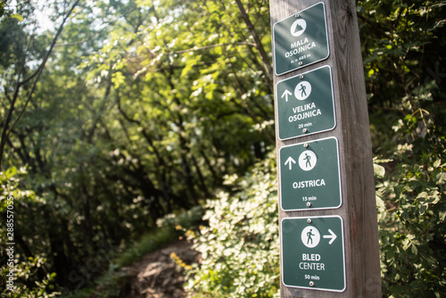 bled, slovenia, hike, signs, trail