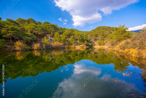cyprus, mountain, dam, forest, water, sky, summer, travel, nature, landscape, beauty, green, blue, park, environment, lake, outdoors, scene, location, scenic, vacation, view