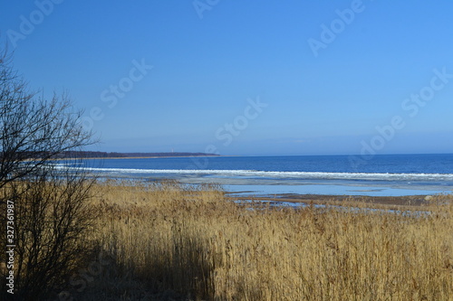landscape, lake, sky, reed, spring, ladoga, shore, beach, nature, horizon, sea, water, grass, dry grass, blue, blue skies, snow, ice, cloud, summer, field, sand, view, green, road, panorama, meadow, island, beautiful