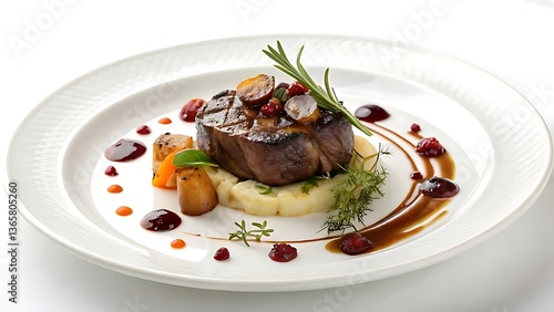 food, meat, plate, dinner, meal, dish, fish, sauce, vegetable, salad, grilled, beef, cookery, epicure, lunch, eatery, white, steak, pork meat, tomatoes, vegetable, fried, mushroom, delicious