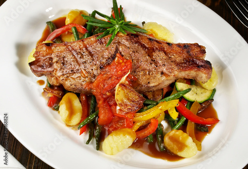 Lamb Cutlet Chop on Vegetables with Gnocchi
