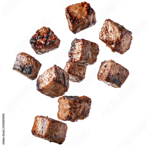 Lamb Meat Cubes Grilled Falling Midair isolated on a transparent background