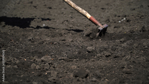 caucasian, botany, summer, job, black, cultivated, men at work, background, manual, day, hoe, garden, agriculture, dirtied, ground, earth, cultivation, land, spring, tool, organic, farmer, nature, dirt, work, growth, farming, gardening, plant, season, farm, rural, hand, ecology, closeup, natural, environment, man, equipment, dig, growing