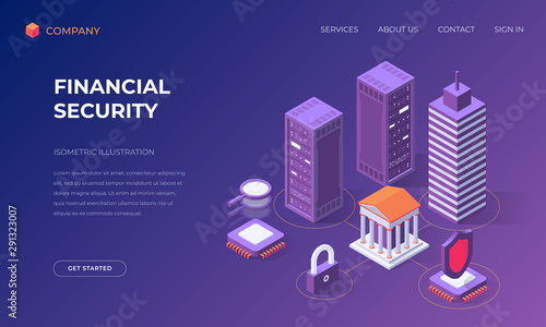 server, purple, lens, circuit, chips, shield, lock, column, bank, building, security, finance, interface, information, illustration, technology, business, vector, concept, isometric, people, graphic, design, three-dimensional, landing, template, strategy