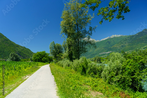 Landscape along the Sentiero della Valtellina, Italy, from the cycleway