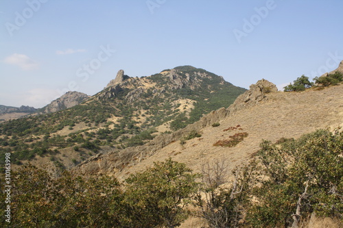 mountain, landscape, sky, nature, hill, mountain, blue, rock, panorama, view, green, summer, tree, travel, sea, crimea, cloud, forest, panoramic, cloud, desert, countryside