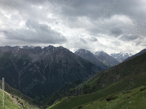 mountain, landscape, sky, mountain, nature, cloud, panorama, travel, summer, view, hill, vale, rock, peak, grass, panoramic, cloud, tour tourism, scenery, hiking, outdoors, trekking, central asia, kazakhstan, adventure, mountaineering, climbing
