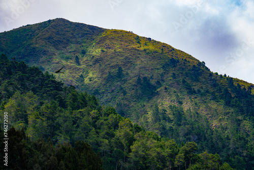 mountain, landscape, sky, nature, mountain, forest, travel, green, cloud, rock, summer, hill, tree, view, tree, peak, rock, tour tourism, vale, water, grass, scenic, blue, beauty, outdoors